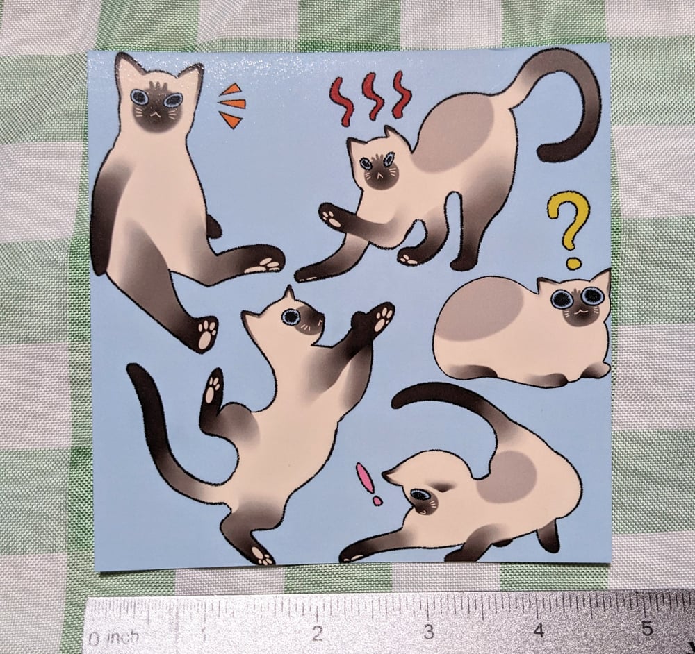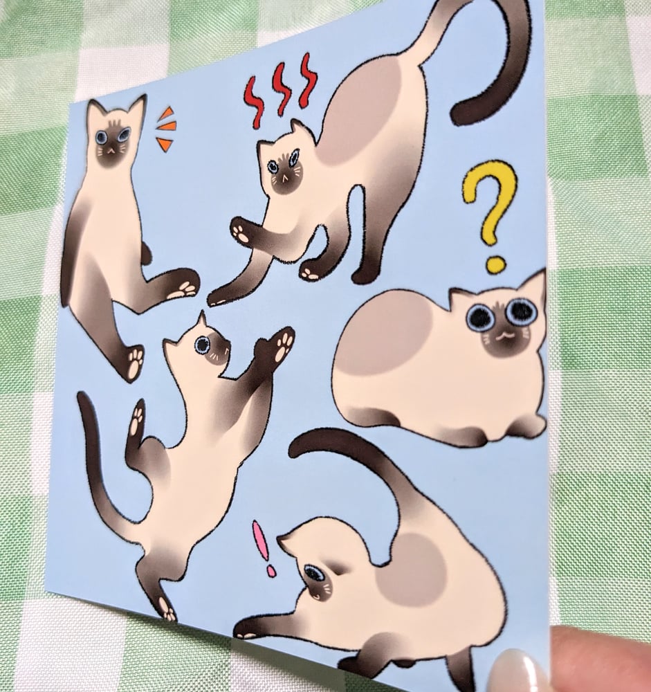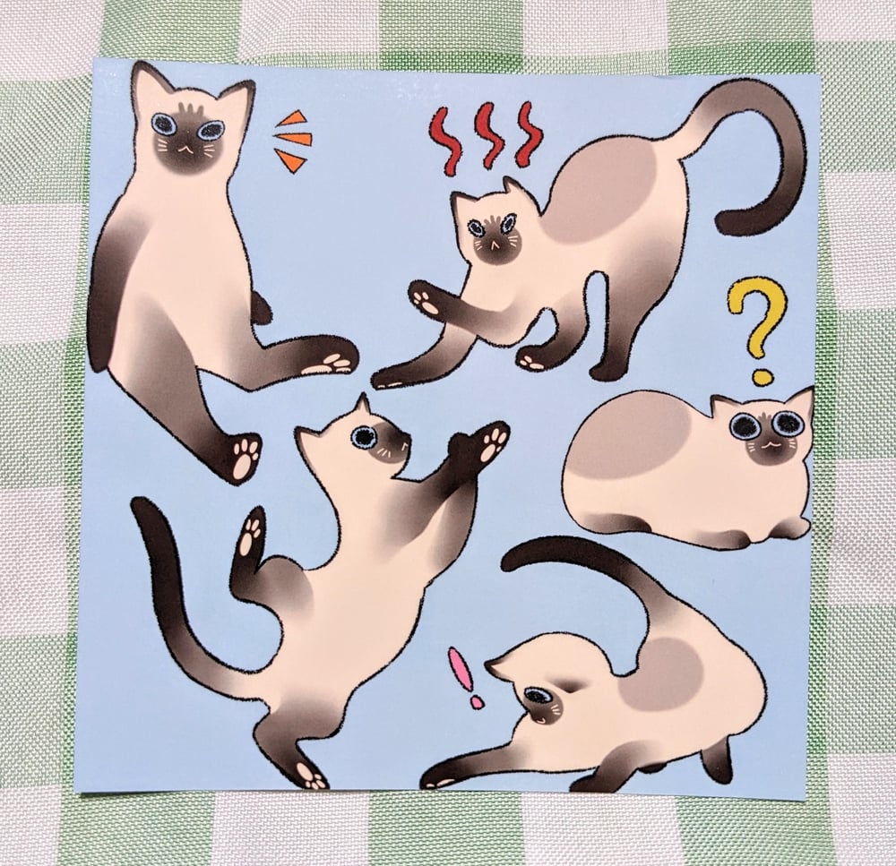 Thick glossy 4.75x4.75" cardstock square print of Siamese cats.